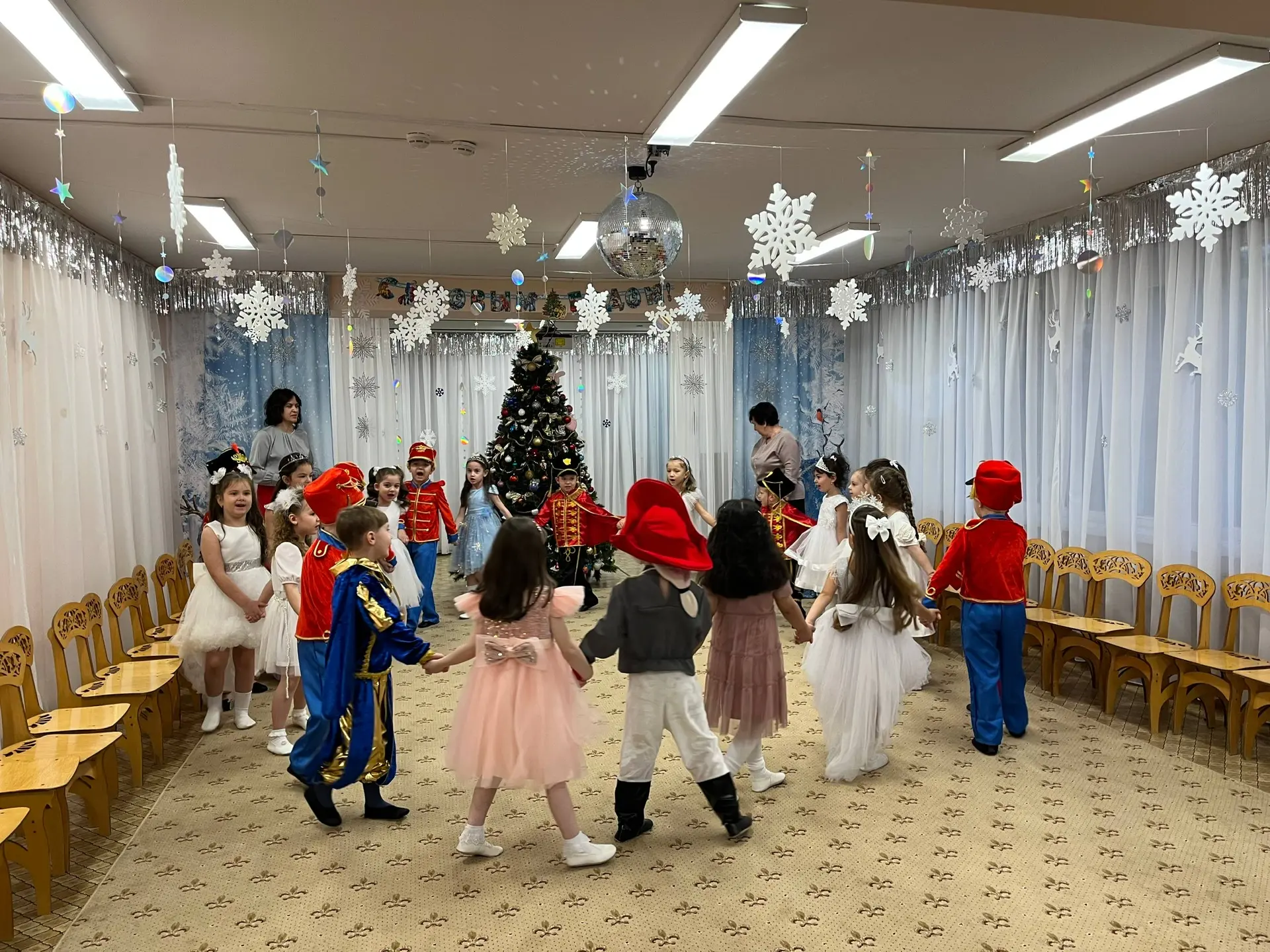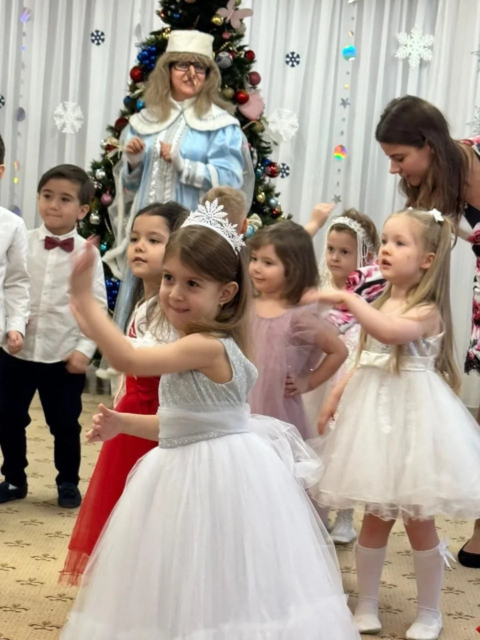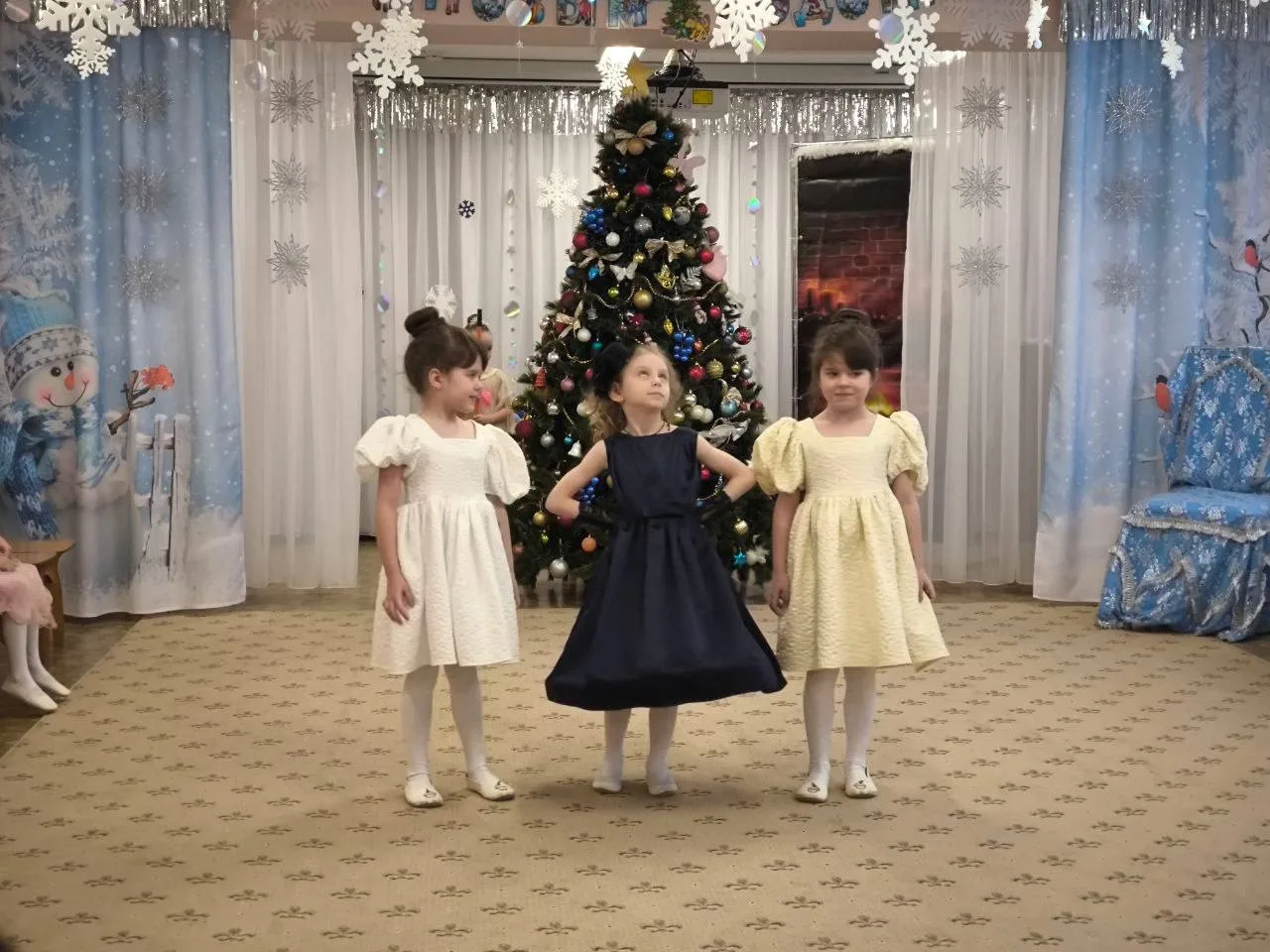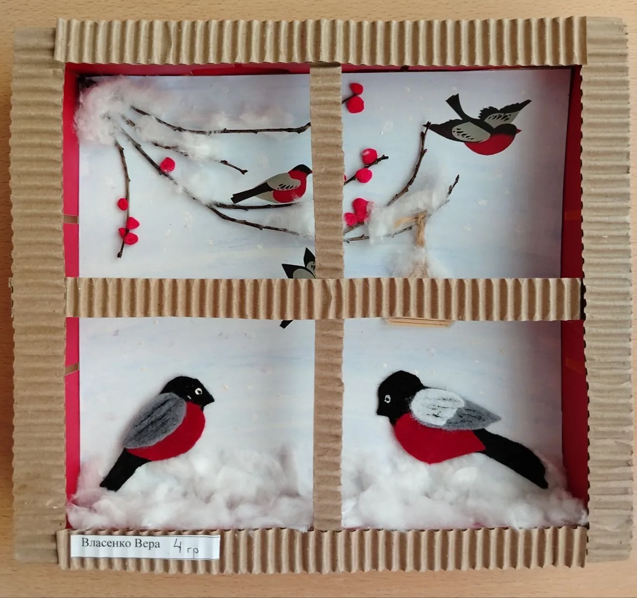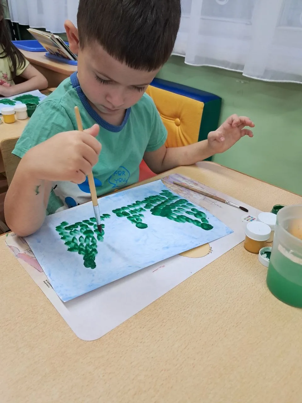 При рассматривании педагог обратил внимание детей на красоту тонких ветвей зимних деревьев, покрытых сверкающим инеем, а также на оттенки, которые использовал художник, чтобы после этого дети могли точно передать пейзаж в своих рисунках и аппликациях.